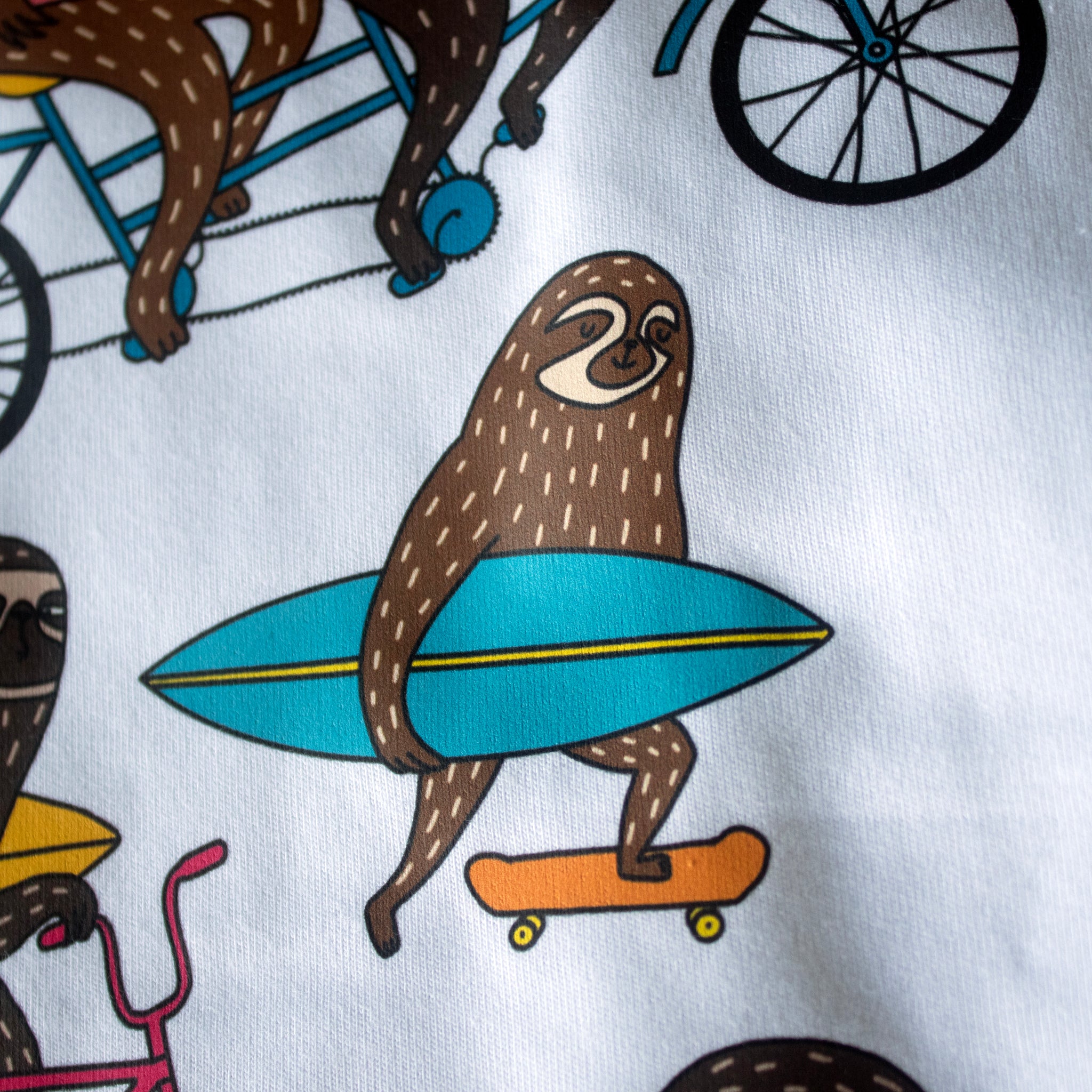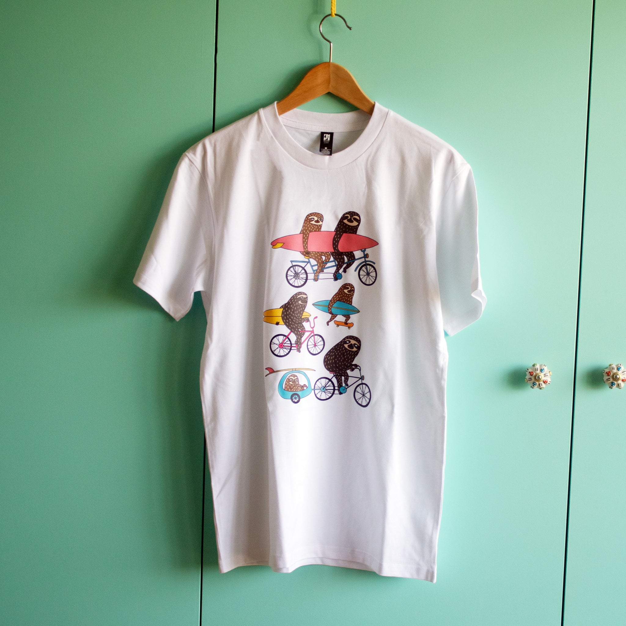 Previously most popular T-shirt (yes, I used to make these in just black) now comes in full colour. Sloths riding to the beach.